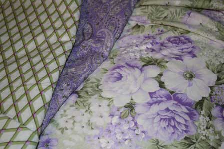 Mottled Purple with green and solid dark green cotton.