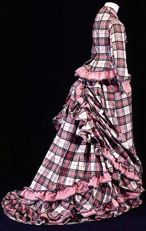 Purple wool plaid with black velvet trim and Lady Cynthia hat (1878)